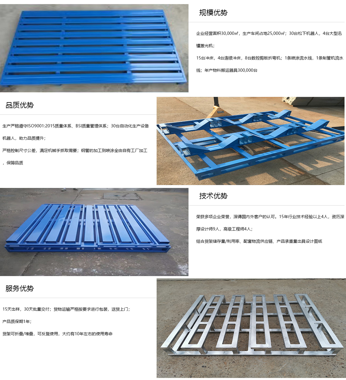 5、用于出口時(shí),鋼托盤不需要熏蒸、高溫消毒或者防腐處理,符合國(guó)際環(huán)保法規(guī);